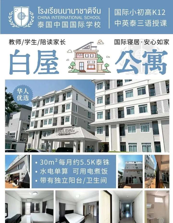 泰国中国国际学校是泰国第一所现代化中文特色国际学校,开设以中国人教版教材为主的,涵盖幼儿园、小学、初中、高中各层次的中国国际课程。学校努力在泰国打造国际化优质教学环境,让中国国际化元素服务于泰国社会发展。学校教学师资力量雄厚,拥有中国籍教师学科课程队伍和英语母语国家师资队伍,让学生不出泰国即可享受中国的基础教育、高中教育课程,还可以接受国际部的SAT、雅思等英文特色课程内容。