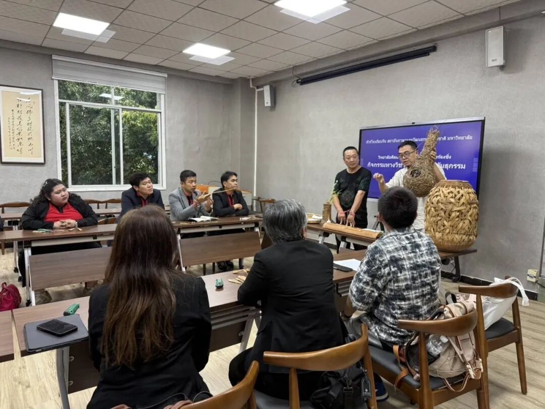 此外,双方还举行了学术交流与合作洽谈,并开展了颇具创意的文化体验活动,例如利用当地天然材料手工制作蜻蜓工艺品。该活动不仅有助于文化学习,还为学生和社区居民创造了经济收益的机会。