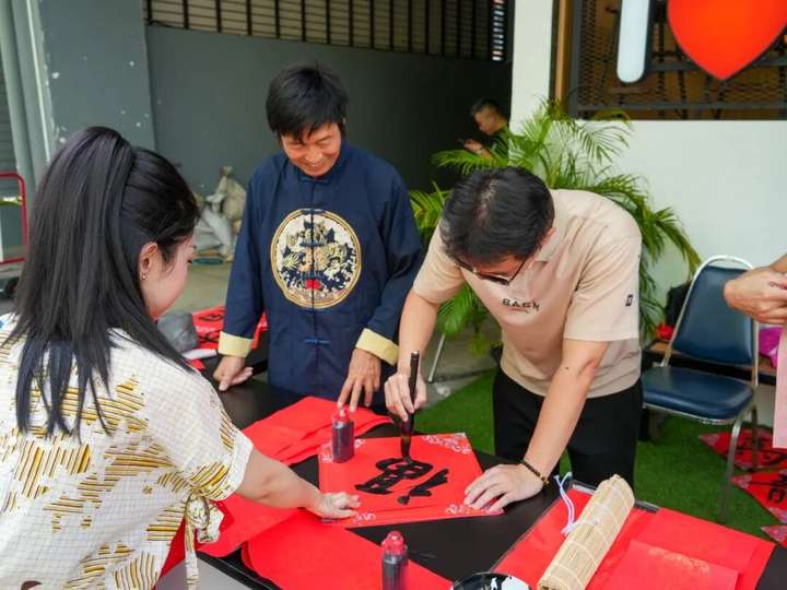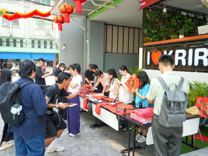 春节的暖意,在泰国格乐大学校园继续蔓延。2月12日腊月二十五,格乐大学校门口墨香四溢。湖南民族职业学院擅长书法艺术的老师们铺开红纸、挥毫泼墨,现场书写“福”字与春联,为在泰华人师生送上新春祝福。不少闻讯赶来的同胞手捧墨迹未干的福字,动情地说:“在异国他乡看到这抹中国红,心里特别暖。”
