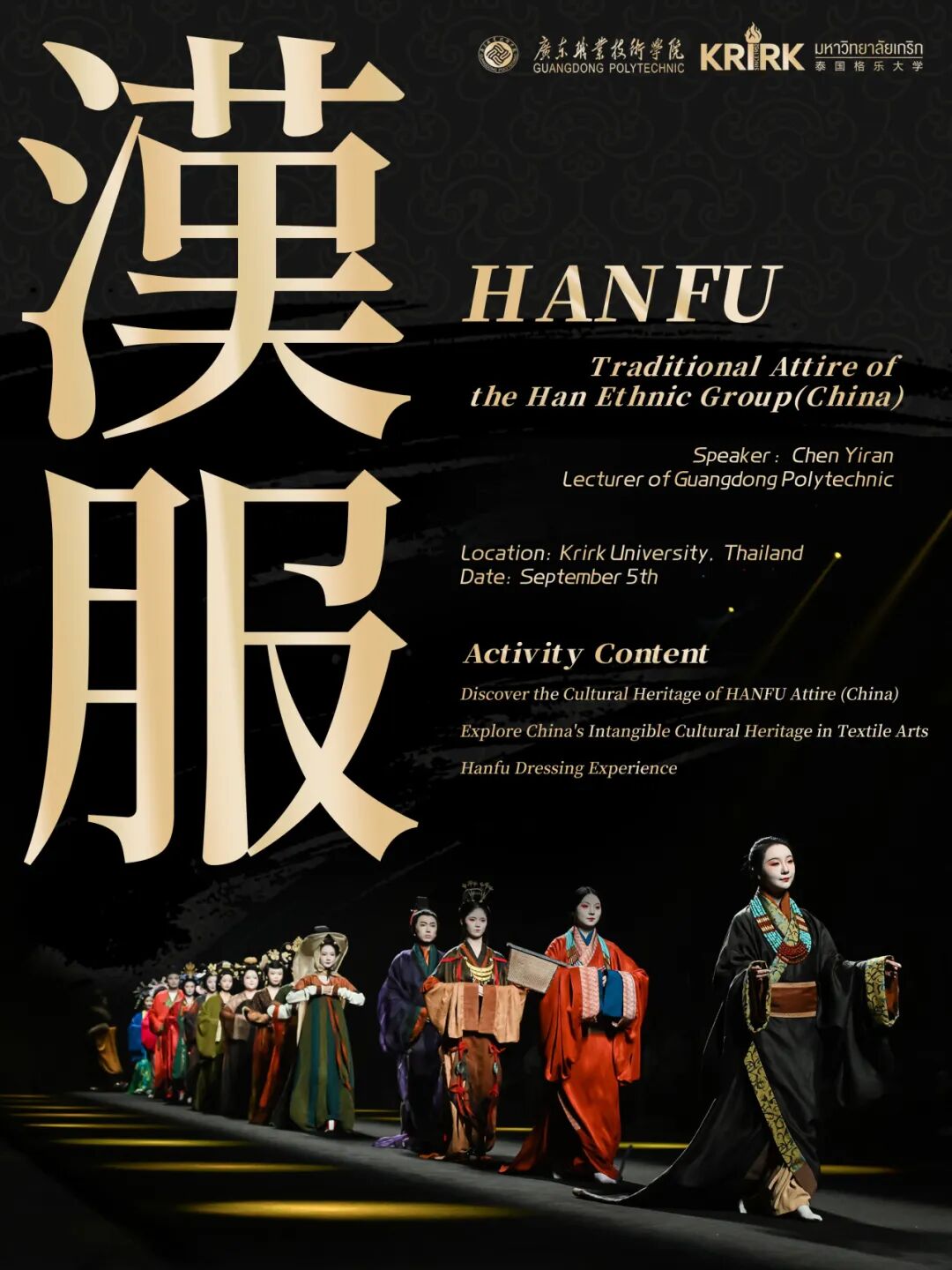继2024年5月泰国格乐大学与广东职业技术学院携手成立中泰非遗文化研究(交流)中心后,以中华优秀传统文化搭建中泰文化交流桥梁,持续深化两国非遗文化对话——即将在泰国格乐大学举办一场以“汉服与非遗文化”为主题的特色讲座,为中泰师生带来中华传统服饰与纺织技艺的文化盛宴。