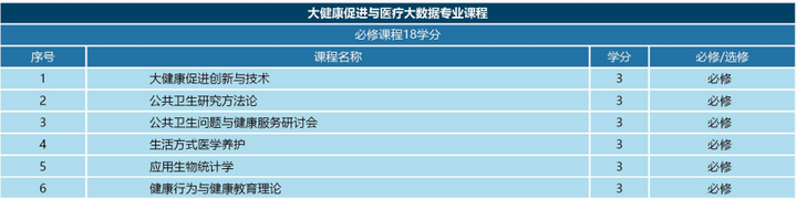 大健康是根据时代发展、社会需求与疾病谱的改变,提出的一种全局的理念,外文理解为综合健康。医学大数据分医疗数据分析和预防医学数据分析两个方面,培养对公共卫生和相关科学的概念、理论知识有充分的了解,能够将科学应用于分析和规划公共卫生问题,能应对各种变化并解决社区和国家层面的健康问题,改善人民健康、实现健康的可持续发展、具备领导能力且能够有效地管理规划工作结构的高级专业人才。