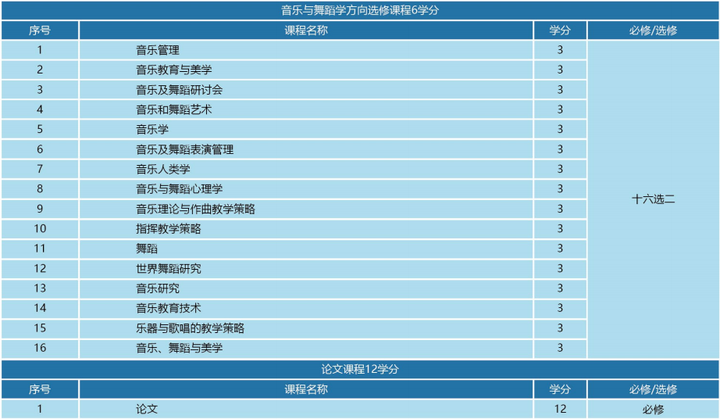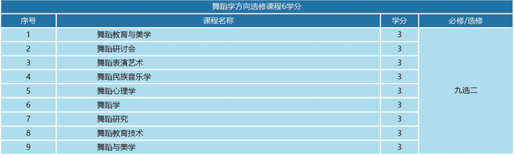 艺术学硕士舞蹈学、音乐与舞蹈学专业课程: