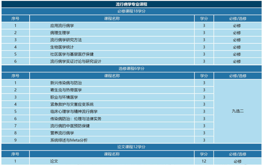 流行病学专业相关课程: