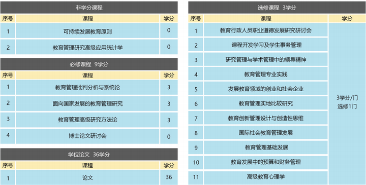 Ph.D哲学博士学位教育管理专业课程
