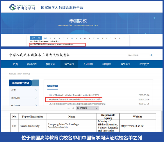 泰国南邦国际科技学院(Lampang Inter-tech College,简称LIT)建于1971年,主校区位于泰国北部的南邦府,紧邻清迈。2004年经泰国高等教育委员会批准获得本硕博学历学位授予权。经过多年发展,目前拥有工商管理与科技学院、文学院、国际学院、中国国际语言文化学院、工程与技术学院和曼谷分校区,是南邦省最前沿的私立高等教育机构。