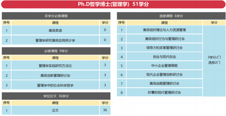Ph.D哲学博士学位管理学专业课程